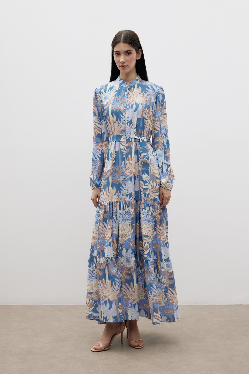 Kadın Desenli Uzun Krep Elbise | Şık ve Rahat Tasarım