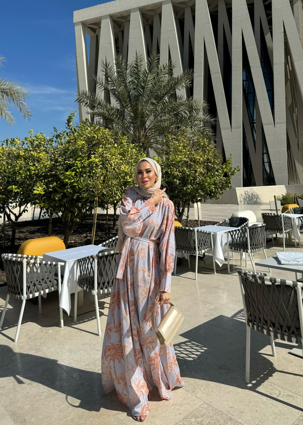 Kadın Desenli Uzun Krep Elbise | Şık ve Rahat Tasarım