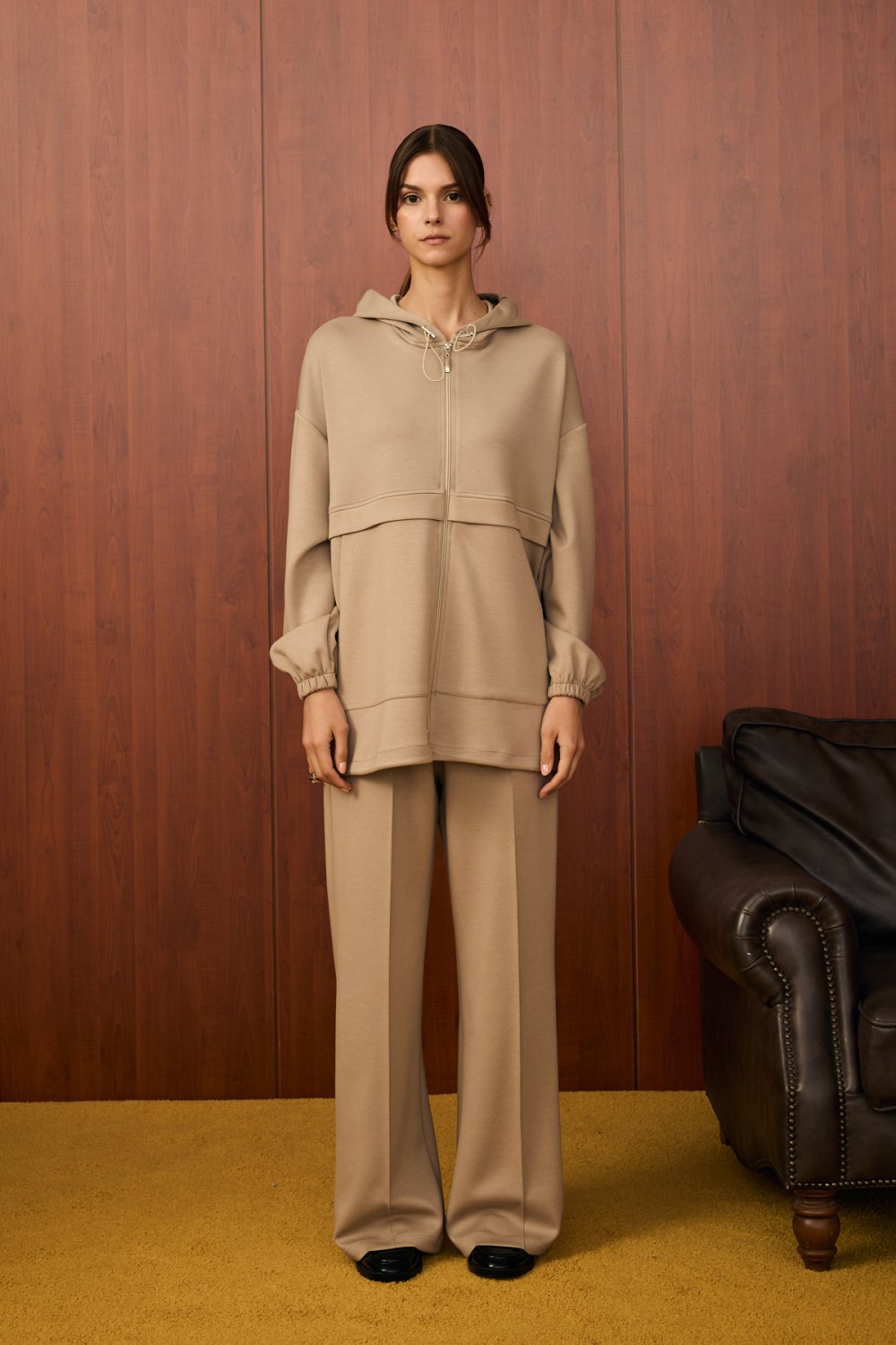 Detaylar: Fermuar ve geniş cep detaylı üst, bol paça pantolon