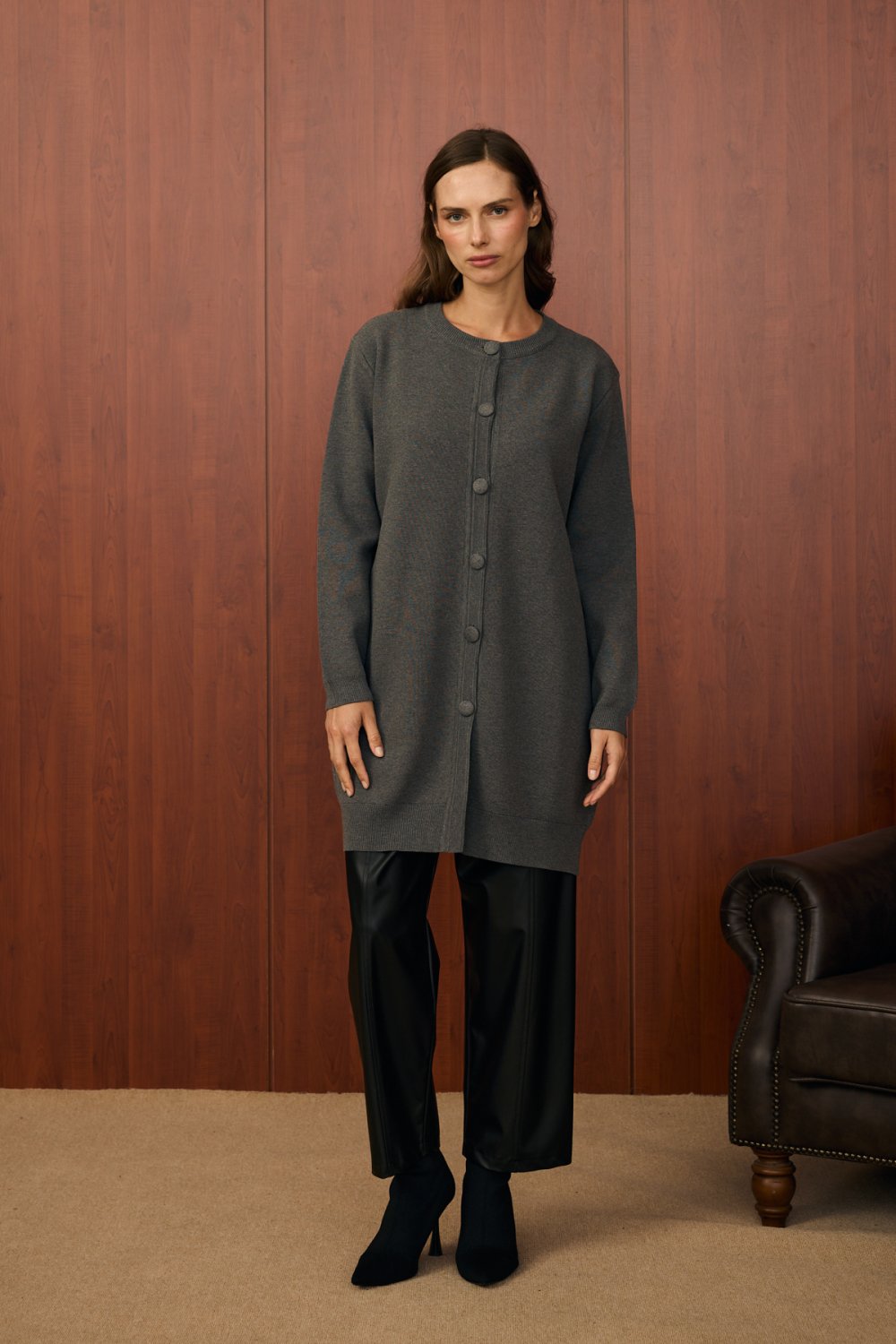 Bej tonlarında, sade ve şık tasarımıyla dikkat çeken bu hırka, %70 viscose, %20 pamuk ve %10 polyester karışımı kumaşıyla konfor ve zarafeti bir arada sunar. Yuvarlak yaka detayına sahip olan model, önden tam boy düğmeli yapısıyla klasik ve modern çizgileri buluşturur. Rahat kalıbı sayesinde 36-44 beden aralığına uyum sağlar. Günlük kullanımda veya ofis stilinizde rahatlıkla tercih edebilirsiniz.