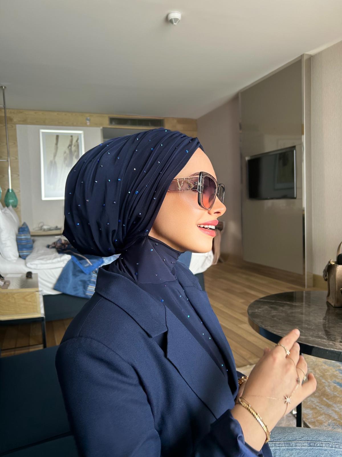 Brilliant taşlı bone lacivert