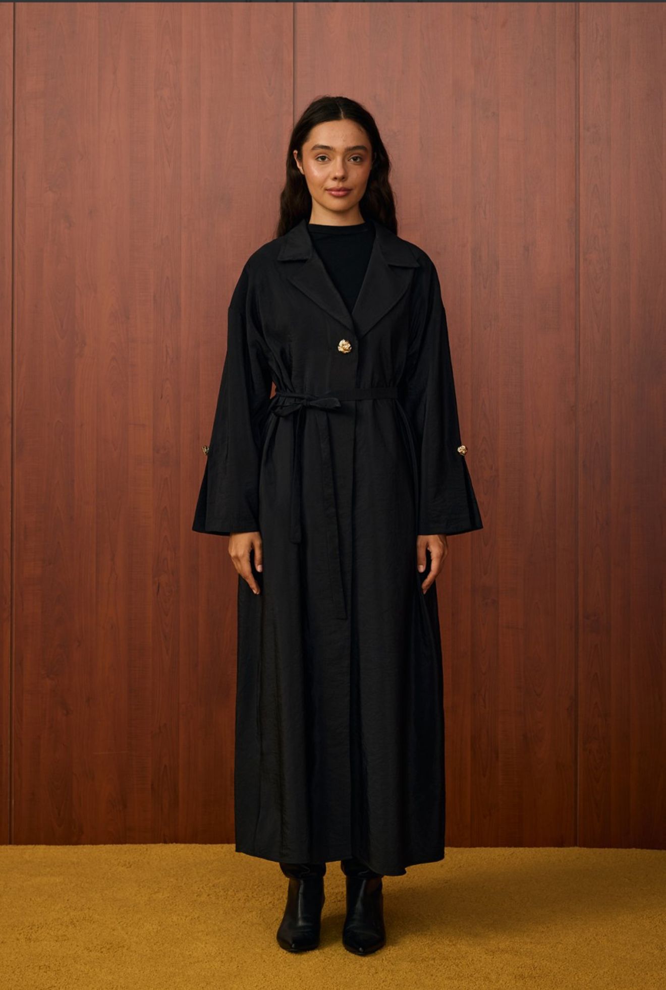 Model Özelliği: Geniş yaka, tek düğme kapama, bele oturtulabilen kuşaklı tasarım. Salaş duruşuyla modern ve şık bir görünüm sağlar.