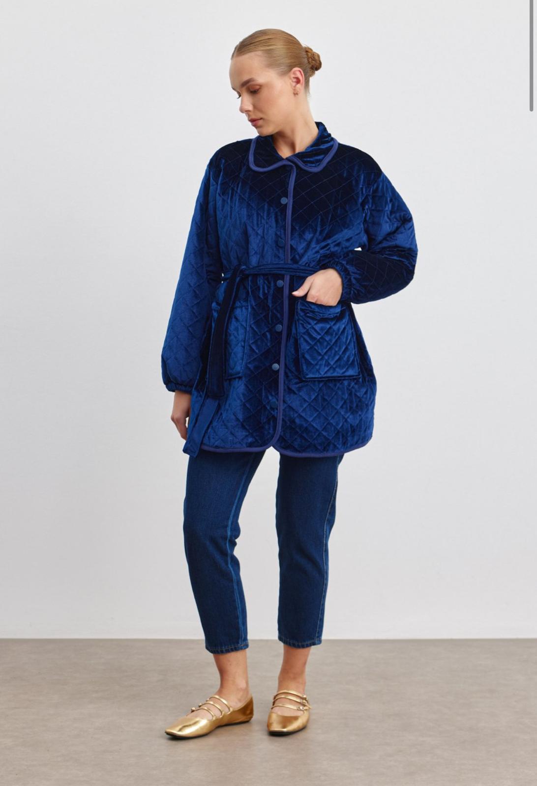 Zarif ve rahat bu kadife kuşaklı ceket, soğuk havalarda stilinizi tamamlayacak mükemmel bir parça. Yumuşak kadife kumaşı, dikişli detayları ve bele oturan kuşağıyla dikkat çeker. Ceketin boyu 77 cm olup, geniş kesimi sayesinde rahatlık sunar. Hem şık hem de pratik olan bu ceket, günlük kullanıma uygun ve stil sahibi bir görünüm yaratır. Beden seçenekleri 1/2 aralığında sunulmuştur.