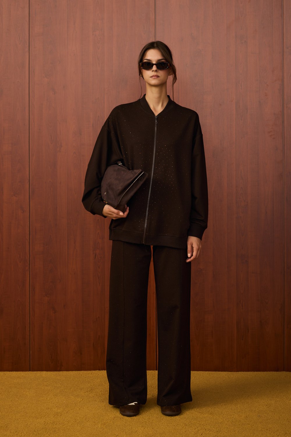 Pantolonun ön yüzeyinde taş detayları devam eder