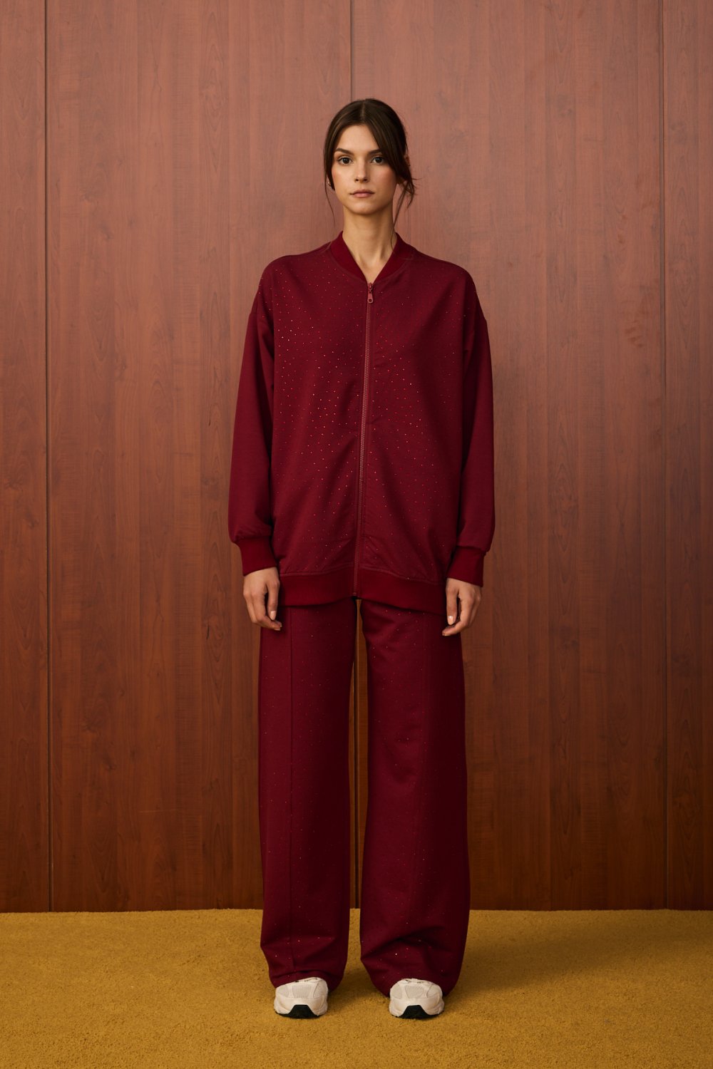 Pantolonun ön yüzeyinde taş detayları devam eder