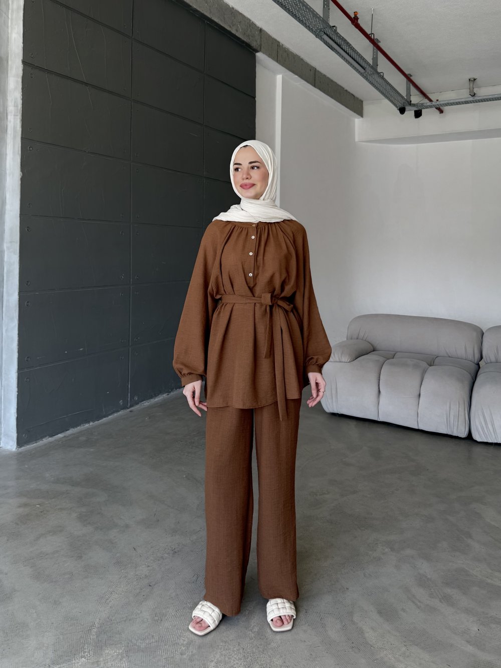 • Model Detayı: Rahat kesim, bol paça pantolon ve tunik uyumu