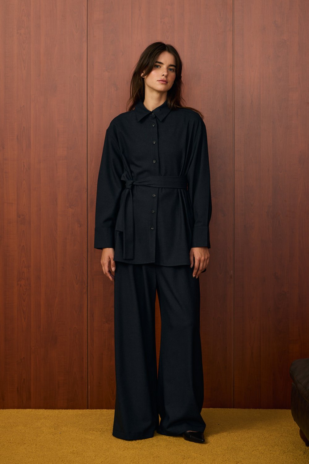 • Kemer detaylı, uzun kollu, düğmeli gömlek